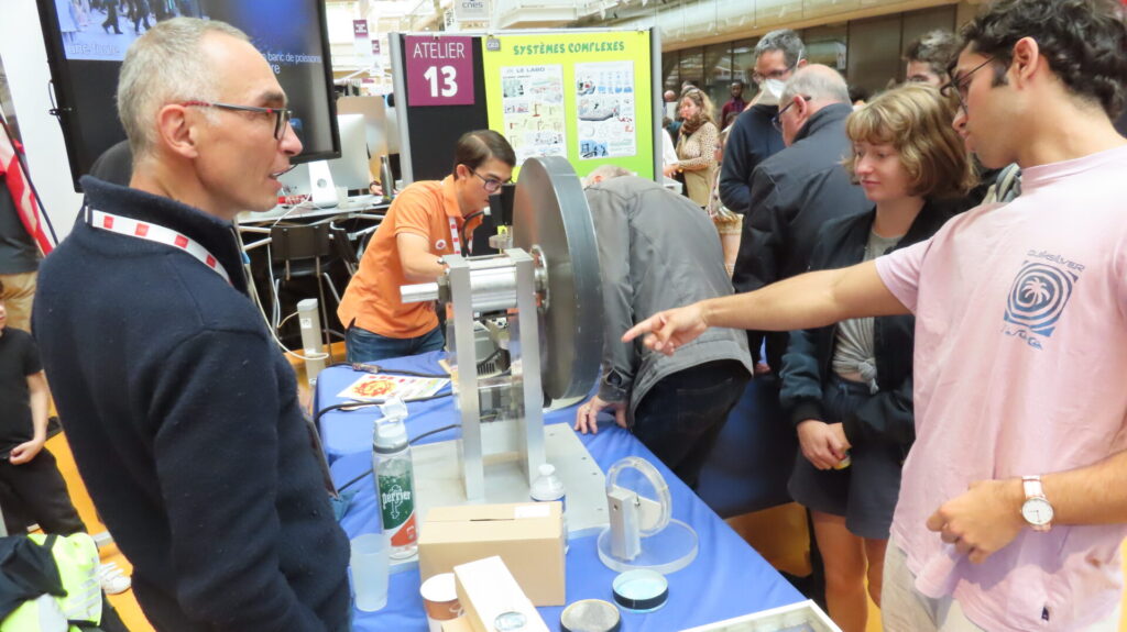 Fête de la science ce weekend du 4-5 octobre 2025, et le SPEC/SPHYNX s’est très largement mobilisé au village des sciences à l’ENS-Paris-Saclay, pour présenter ses expériences et outils de démonstration pour expliquer rien de moins que : le magnétisme, le chaos, le comportement des milieux granulaires, la turbulence ou encore la structure et la résistance de nouveaux méta-matériaux.