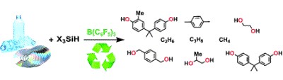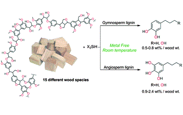 Unprecedented organocatalytic reduction of lignin model compounds to phenols and primary alcohols using hydrosilanes