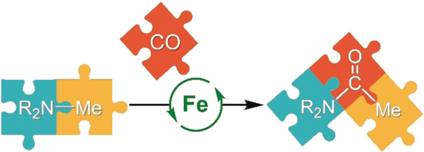 Carbonylation of C−N Bonds in Tertiary Amines Catalyzed by Low‐Valent Iron Catalysts