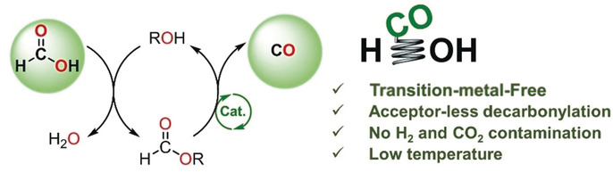 Transition-Metal-Free Acceptorless Decarbonylation of Formic Acid Enabled by a Liquid Chemical-Looping Strategy