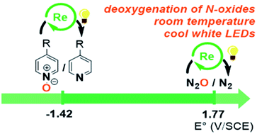 Photocatalytic deoxygenation of N–O bonds with rhenium complexes: from the reduction of nitrous oxide to pyridine N-oxides