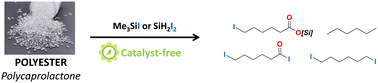 Catalyst-free depolymerization of polycaprolactone to silylated monoesters and iodide derivatives using iodosilanes