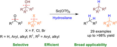 Scandium-Catalyzed Highly Selective Deoxygenation of Alcohols by Using Hydrosilanes as Reductants