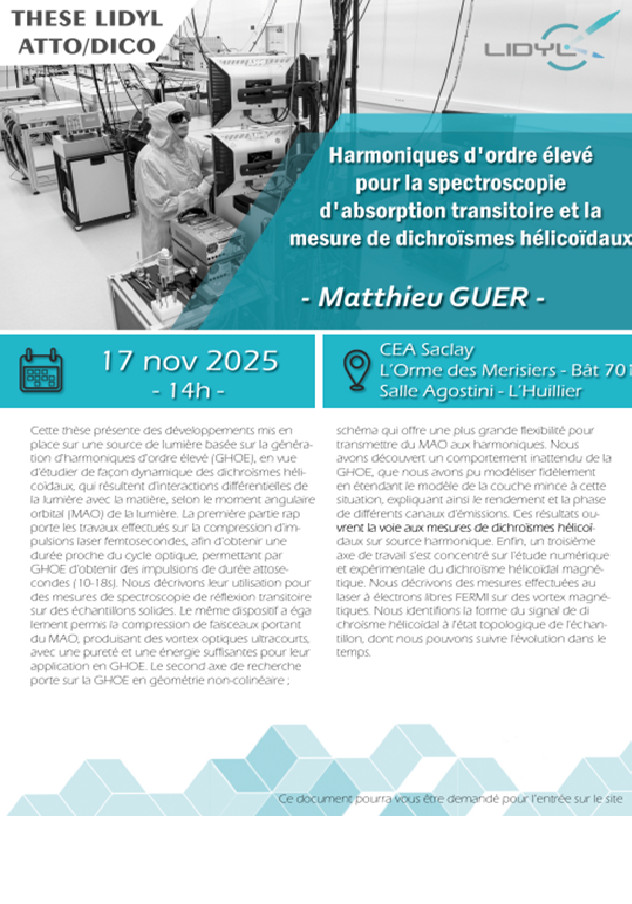 Keywords : Angular momentum of light, Attosecond, High harmonics generation, Post-compression, Nonlinear optics.