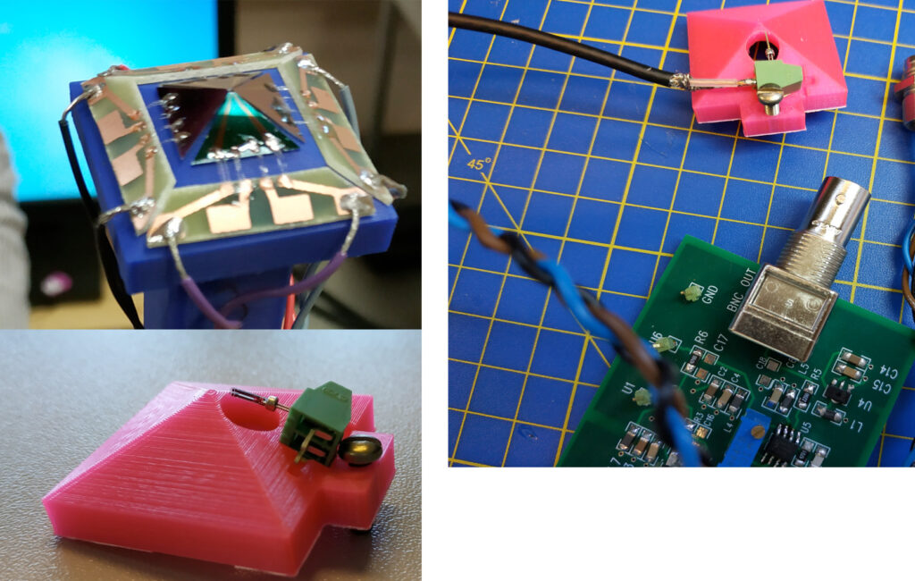 Afin de mesurer et de détecter le proche champ magnétique à l’aide de leur capteur GMR construit en nanofab en interne , le laboratoire LNO avait besoin d’un système de mesure de distance / proximité très précis ( ordre du µm) afin de positionner très précisément leur capteur GMR pour mesurer un champ de surface. Je me suis basé sur le schéma de principe électronique donné par L.V.P , dont j’ai extrait un schéma et j’ai ensuite effectué le placement et routage sur le circuit imprimé.
