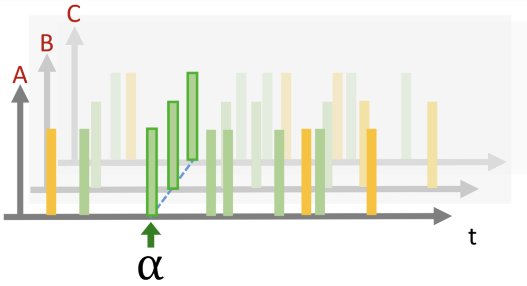 Each alpha event consists of a fast scintillation peak, a dead time, and a dense tail of delayed pulses lasting approximately 1500 ns. An Alpha Event Vector (AEV) of 2000 ns is extracted following the main peak. The delayed tail, not the pulse amplitude, is the discriminating feature learned by the ANN.