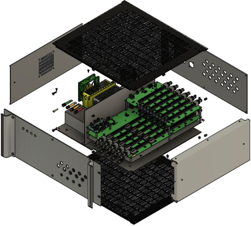 Interco is a low-noise analog/digital signal interconnection system reducing lab cabling complexity, with modular control and a Python command library.