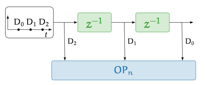 - Convolutional: sliding/overlapping windows (e.g., FIR-style processing).