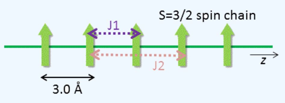 This is a so-called J1-J2 chain of S = 3/2 spins. There is a first-neighbour coupling J1, and a second-neigbour coupling J2 along z.